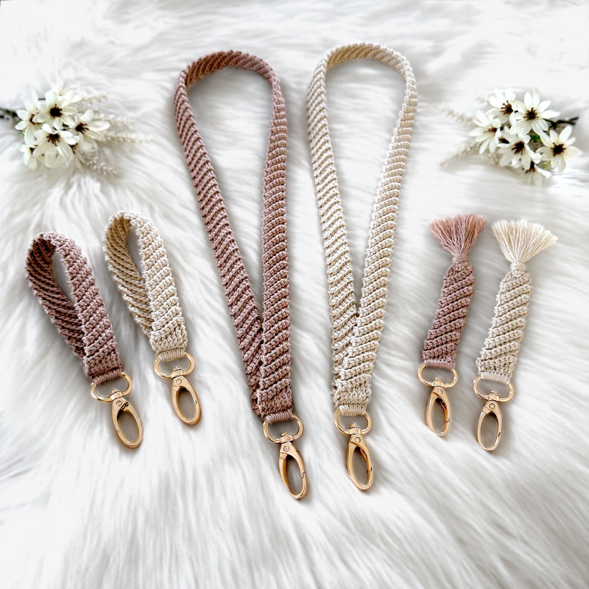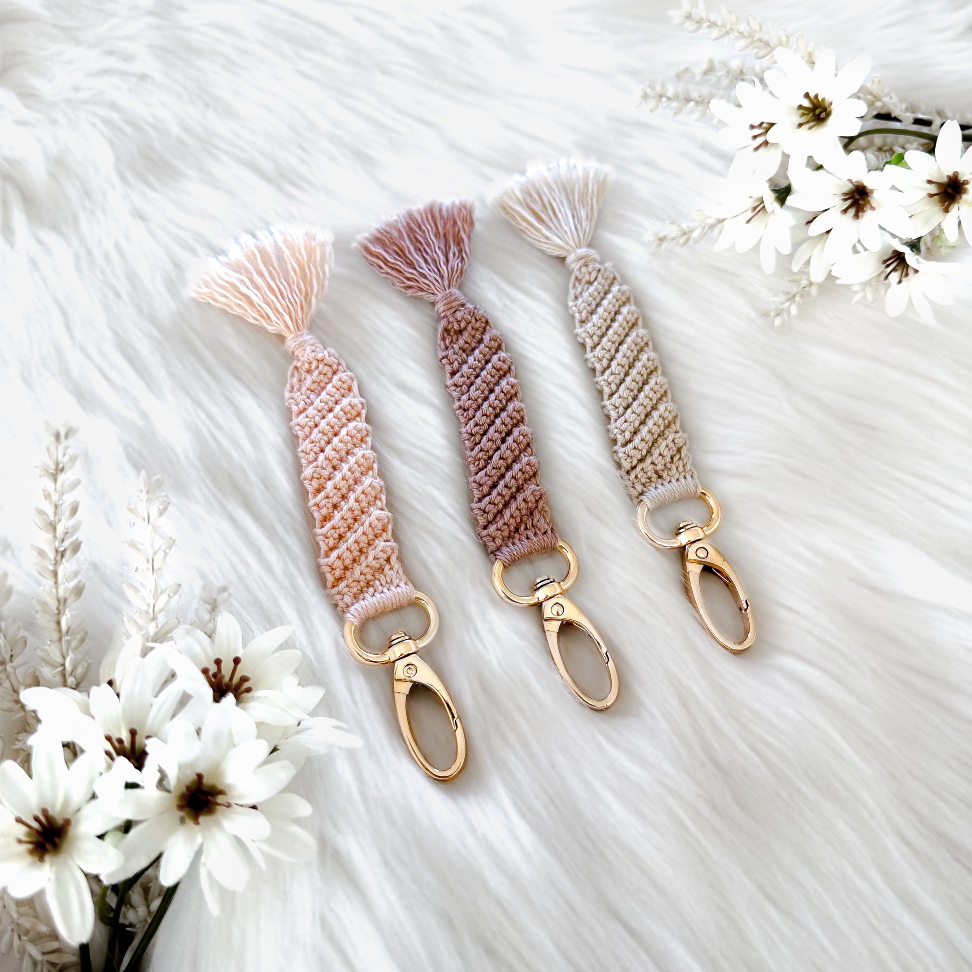 ♡ Virka ett vackert nyckelband till dina nycklar. Mönstret innehåller tre olika modeller och du väljer själv om du vill virka ett kortare till handleden, ett längre runt halsen, alternativt ett med en snygg tofs på toppen. Eller varför inte en av varje?