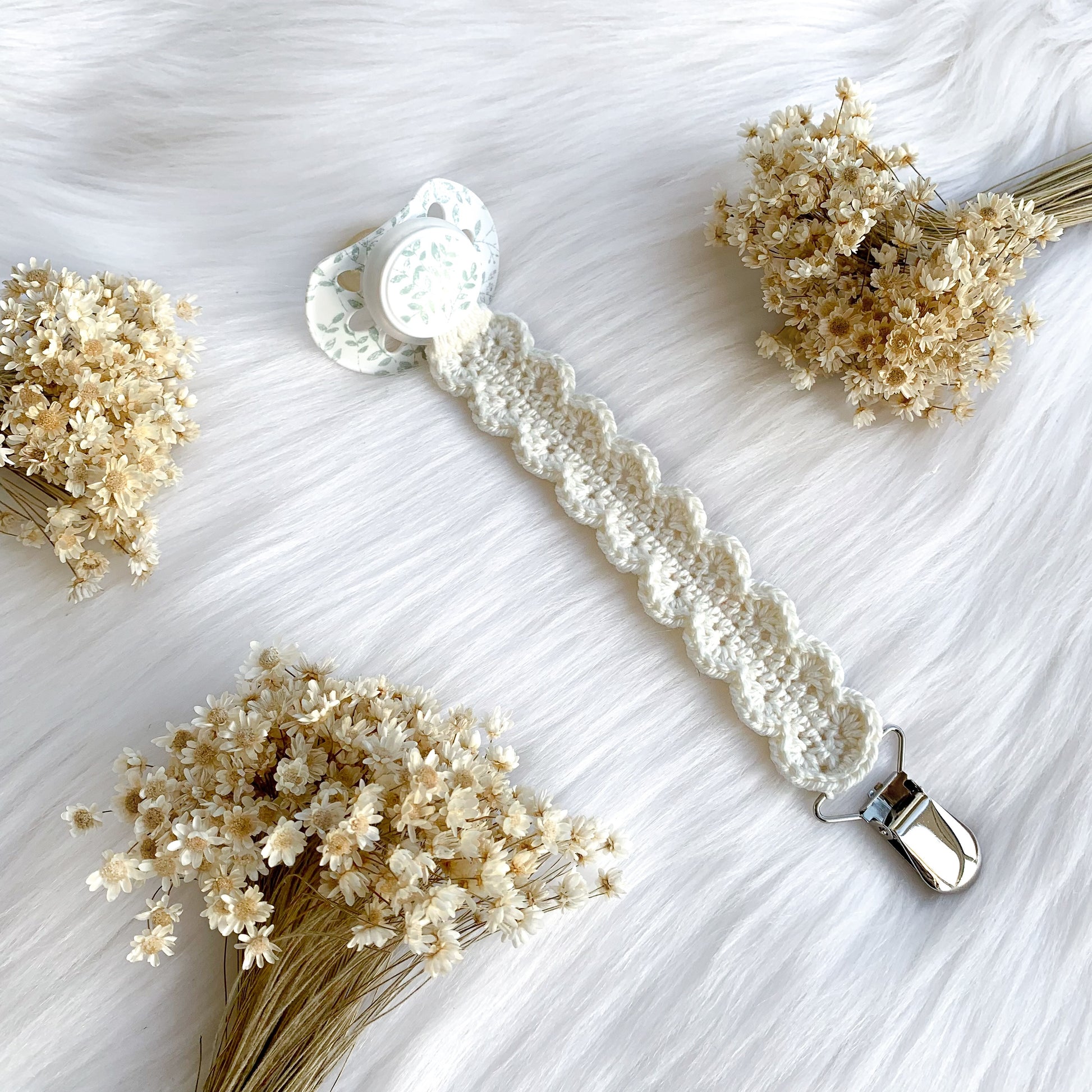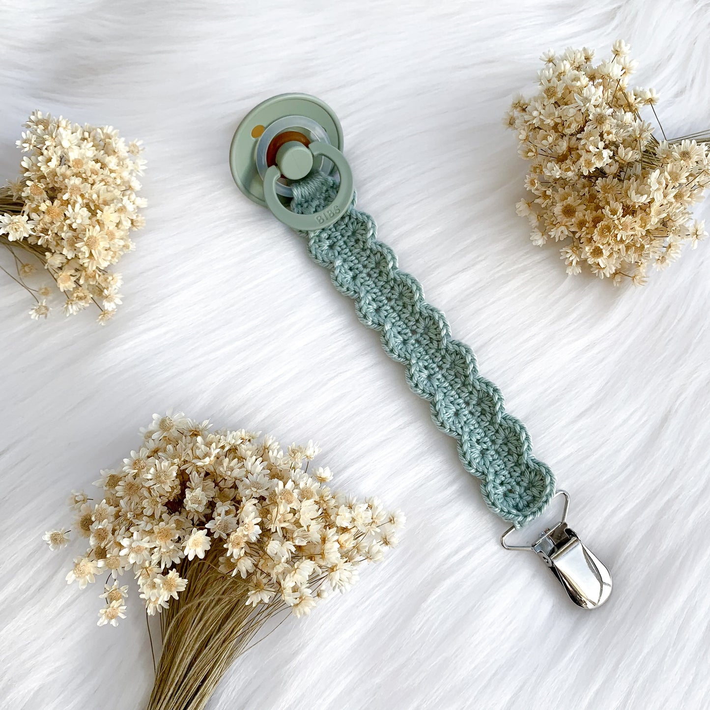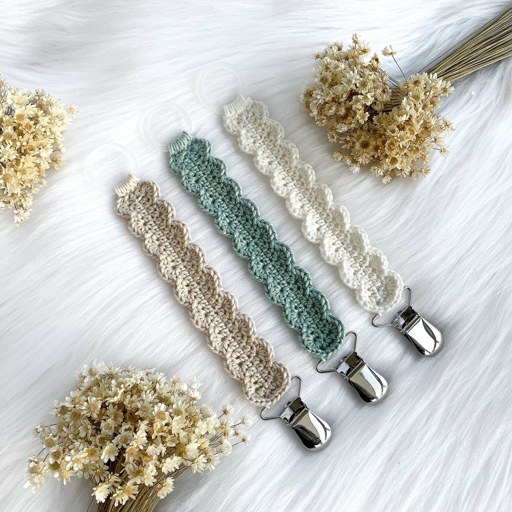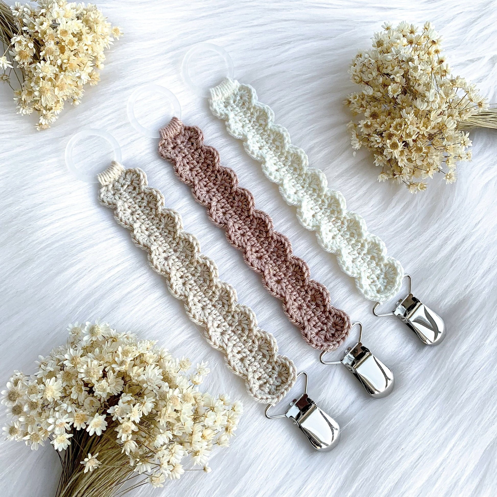 ♡ Virka en vacker napphållare som den perfekta presenten till nyblivna föräldrar, eller till din egen lilla bebis. Napphållaren fästs enkelt i barnets kläder och hjälper till att hålla koll på nappen så att den aldrig försvinner och alltid finns nära till hands. Barnet och nappens bästa vän!