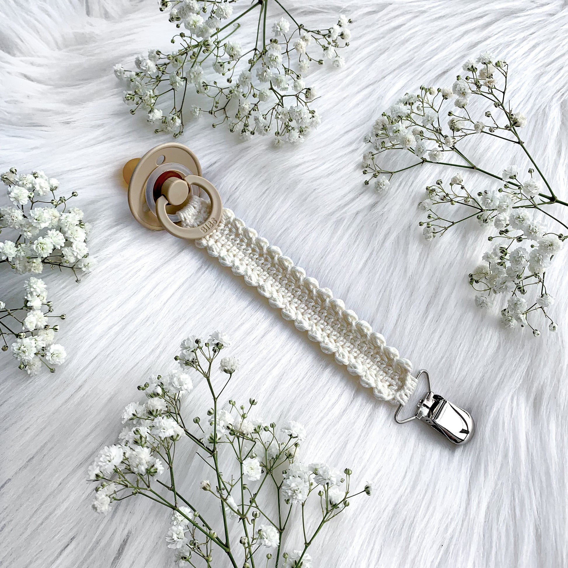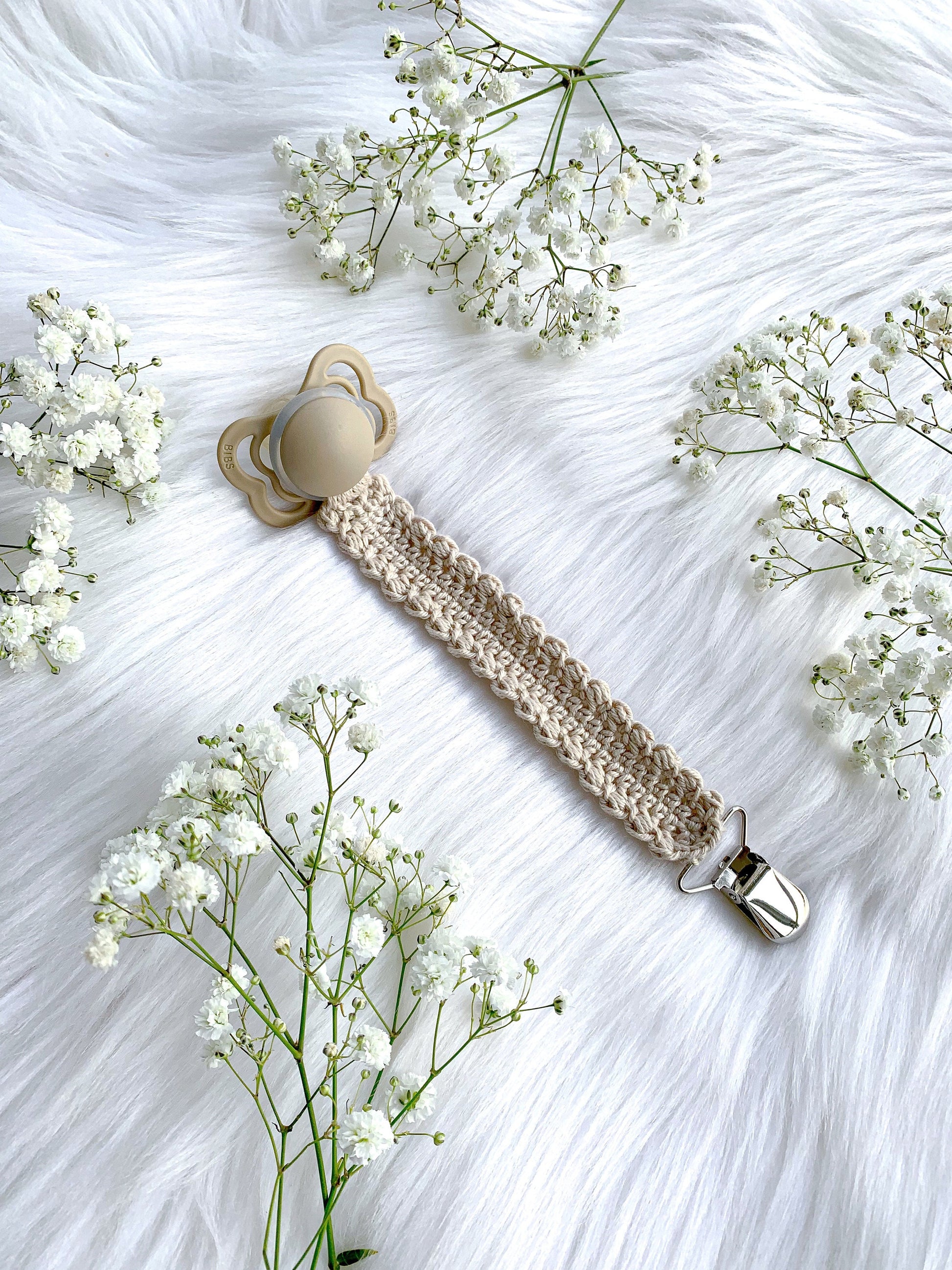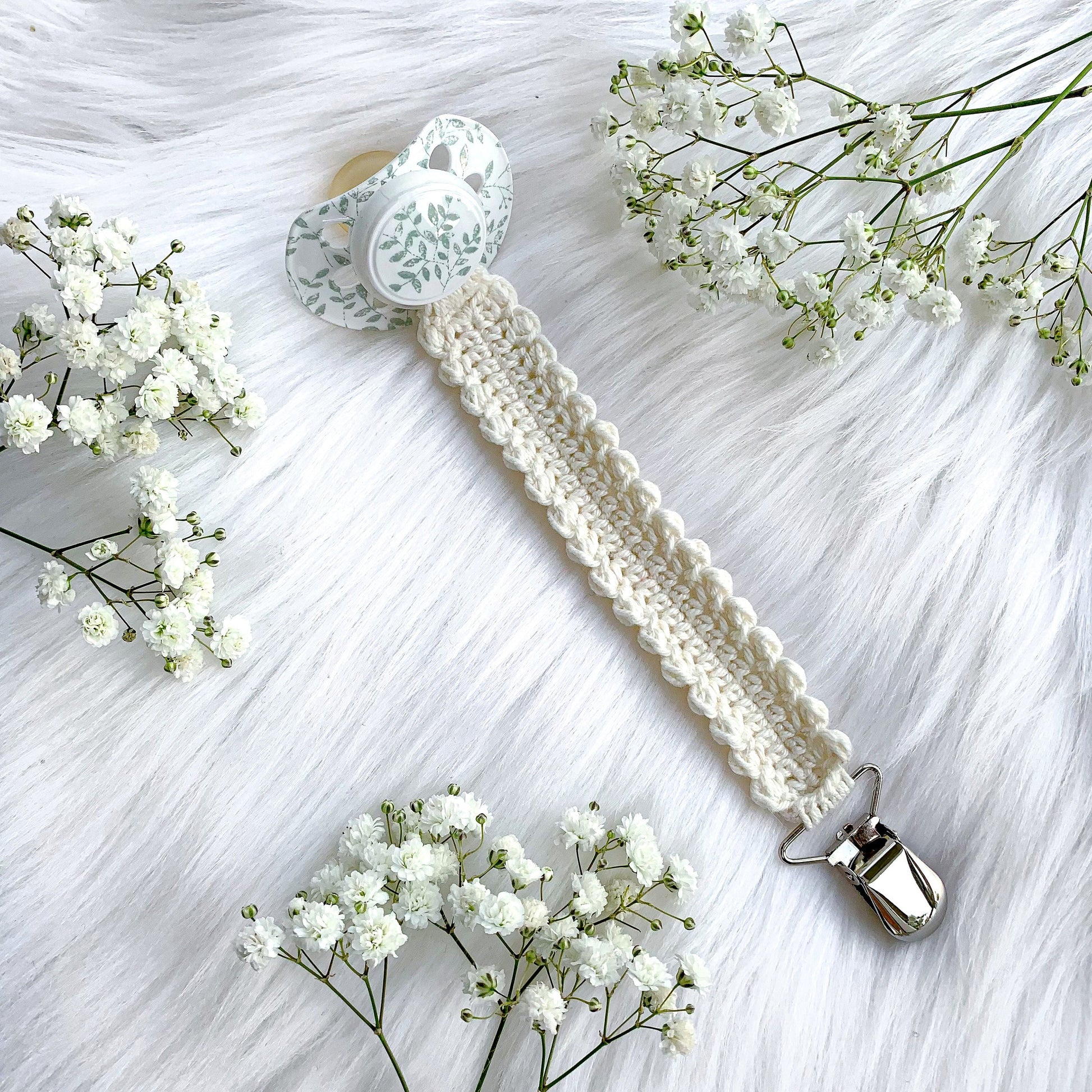 ♡ Virka en vacker napphållare som den perfekta presenten till nyblivna föräldrar, eller till din egen lilla bebis. Napphållaren fästs enkelt i barnets kläder och hjälper till att hålla koll på nappen så att den aldrig försvinner och alltid finns nära till hands. Barnet och nappens bästa vän!